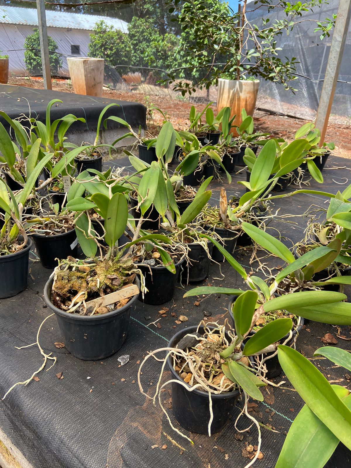 Kit com 5 cattleyas hibridas pré adultas, sem identificação quanto a seu cruzamento e sem espata floral. Ainda irão crescer e desenvolver quanto ao tamanho. Expectativa de floração pra daqui 1 ano.